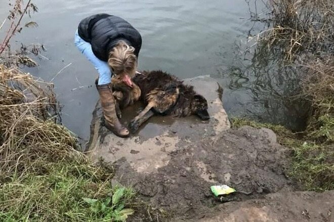Biednemu psu kończyły się ostatnie siły. Ale świat nie jest pozbawiony życzliwych ludzi. Jedna kobieta przypadkowo zobaczyła tonące zwierzę, bez strachu wskoczyła do wody, aby mu pomóc.