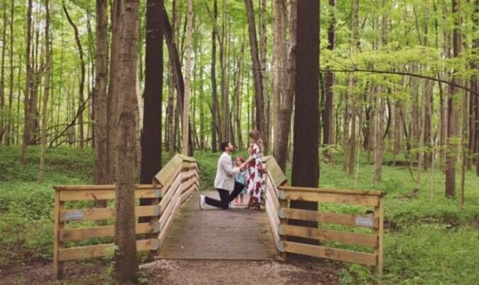 Mężczyzna ukląkł na jedno kolano i zapytał Cassandrę czy zostanie jego żoną.