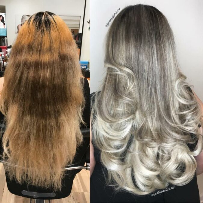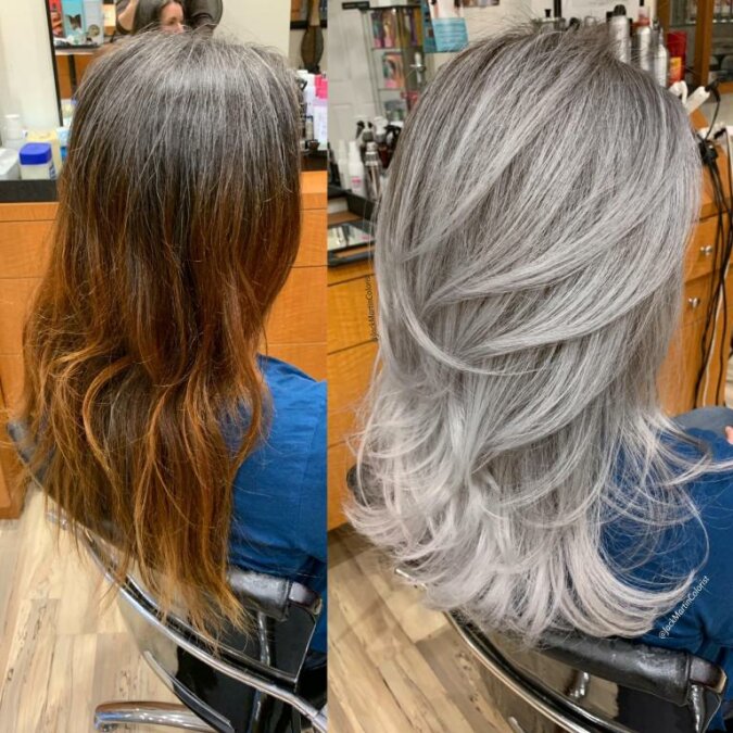 Kobieta była bardzo zadowolona z wyniku. Kolorysta opublikował to zdjęcie na swojej stronie na Instagramie trzy lata temu, a ono wciąż jest omawiane i nie bez powodu: on jest prawdziwym mistrzem siwych i srebrnych włosów.