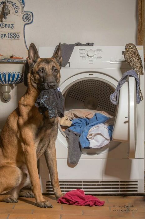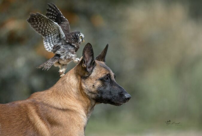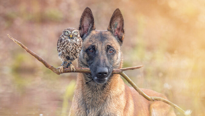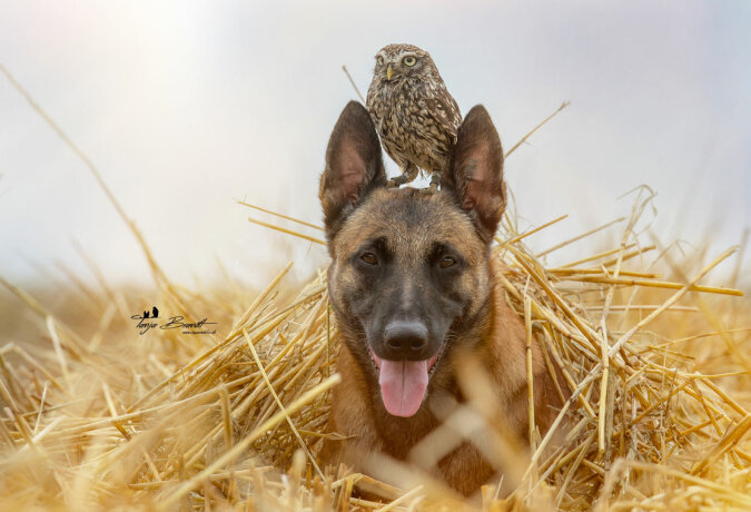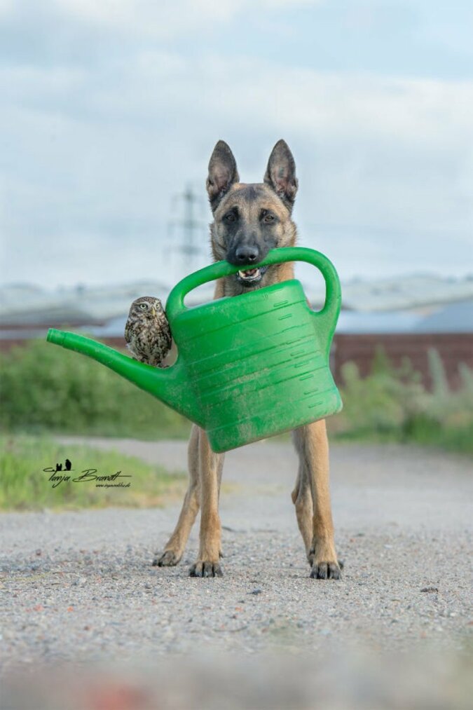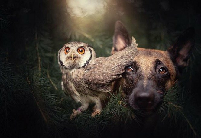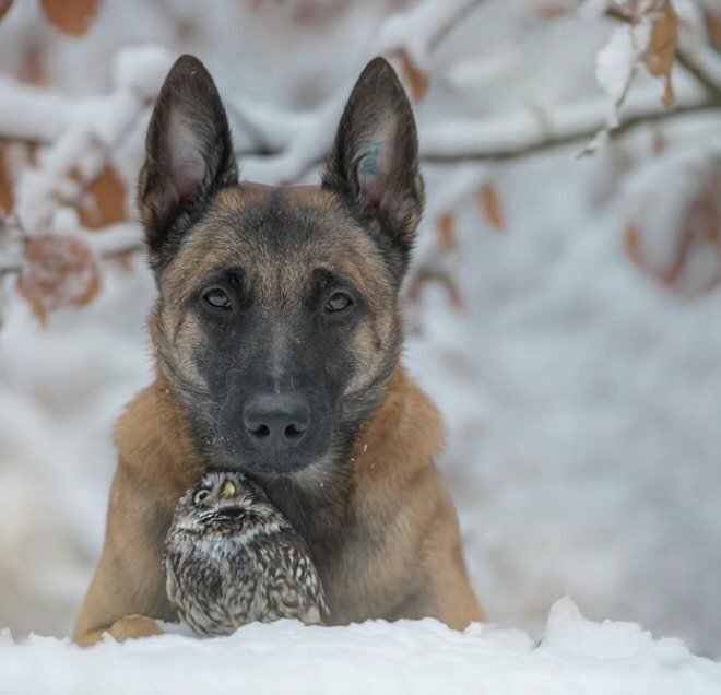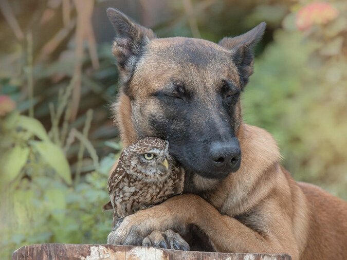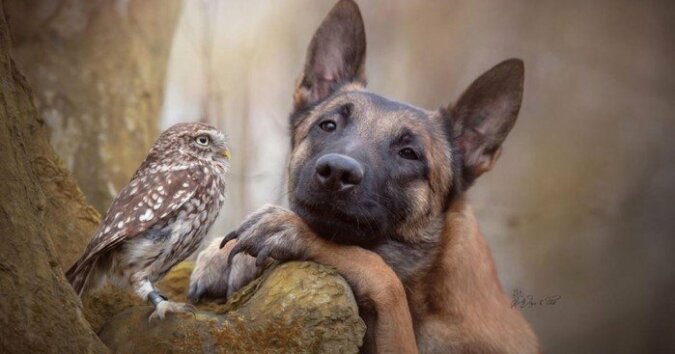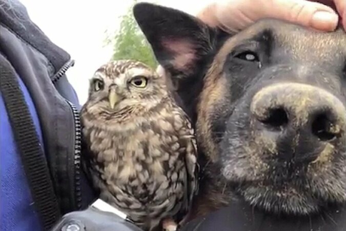 Owczarek ma na imię Ingo, a sowa to Poldi. Kiedyś uratowała tych dwoje, ale nie mogła nawet przepuszczać, że kiedykolwiek będą w stanie znaleźć wspólny język!