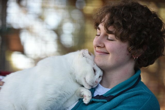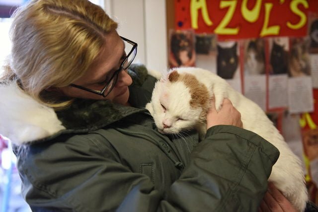 „On po prostu kocha ludzi i uwielbia być trzymany w ramionach. Nie spotkałam jeszcze kota, który byłyby również szczęśliwy i zadowolony, gdy się przytula do ludzi - powiedział jeden z wolontariuszy.