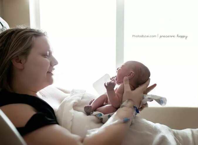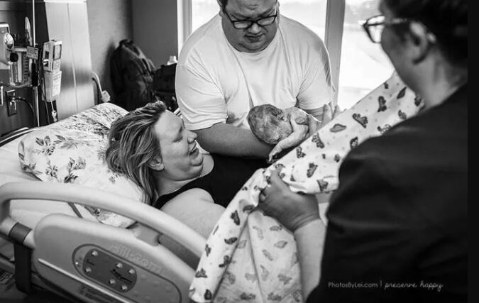 Wszystko poszło dobrze! Dziewięć miesięcy później urodziła się mała Evelyn. Podczas narodzin obecna była kobieta-fotograf, która utrwaliła pierwsze minuty spotkania rodziców z długo wyczekiwanym dzieckiem.