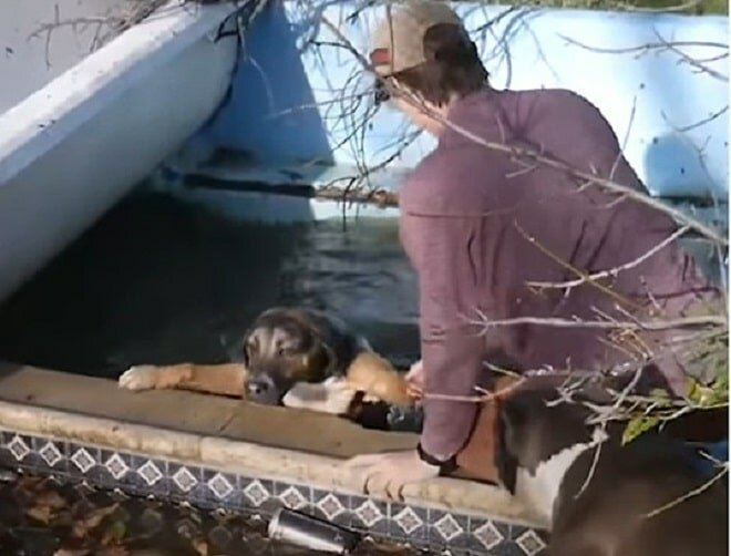 Trevor natychmiast podskoczył do psa, który walczył o utrzymanie się na powierzchni. Wyciągnął ręce, złapał przerażone zwierzę i bezpiecznie wyciągnął je na powierzchnię!